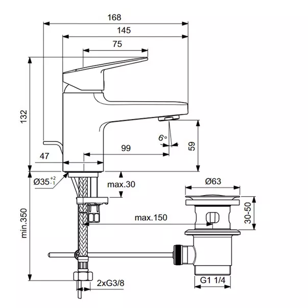 Specificatii tehnice Baterie lavoar cu monocomanda Ideal Standard Ceraplan: