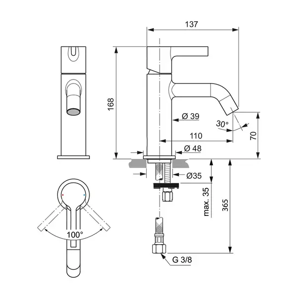 Specificatii tehnice Baterie lavoar Ideal Standard Atelier Joy monocomanda argintiu Silver Storm: