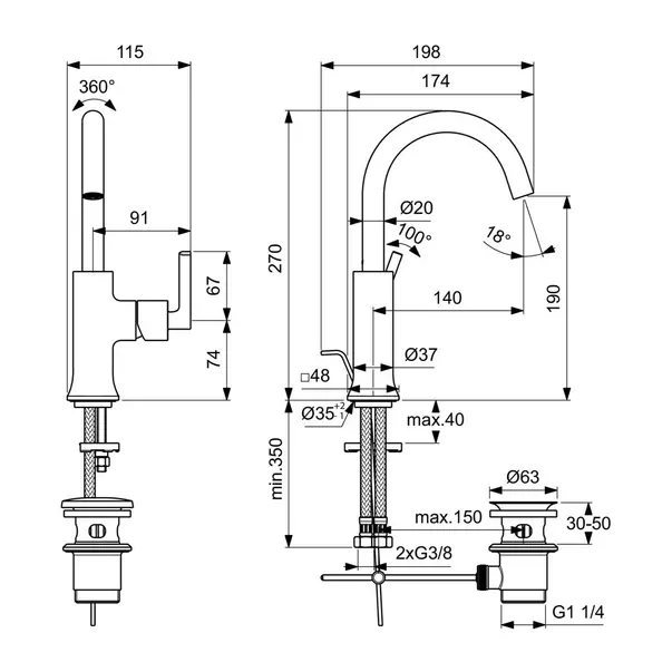 Specificatii tehnice Baterie lavoar Ideal Standard Atelier Joy Neo Piccolo crom lucios cu ventil: