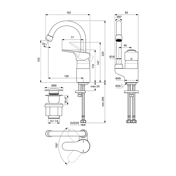 Specificatii tehnice Baterie lavoar Ideal Standard Cerabase crom cu ventil Click-Clack: