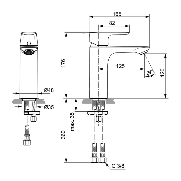 Specificatii tehnice Baterie lavoar Ideal Standard Connect Air Grande pentru proiecte argintiu Silver Storm: