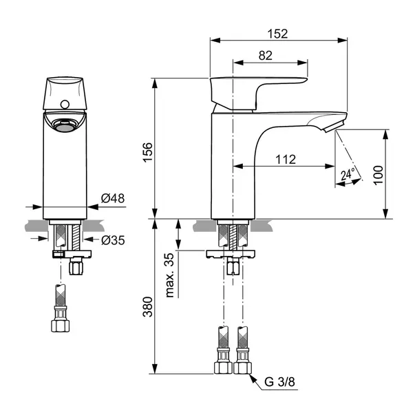Specificatii tehnice Baterie lavoar Ideal Standard Connect Air pentru proiecte gri Magnetic Grey monocomanda: