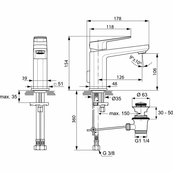 Specificatii tehnice Baterie lavoar Ideal Standard Tonic II crom lucios cu ventil Pop-Up:
