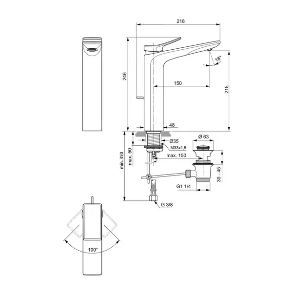 Specificatii tehnice Baterie lavoar inalta Ideal Standard Atelier Conca auriu periat cu ventil Pop-Up:
