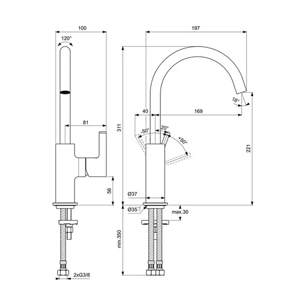 Specificatii tehnice Baterie lavoar inalta Ideal Standard Atelier Joy gri Magnetic Grey monocomanda: