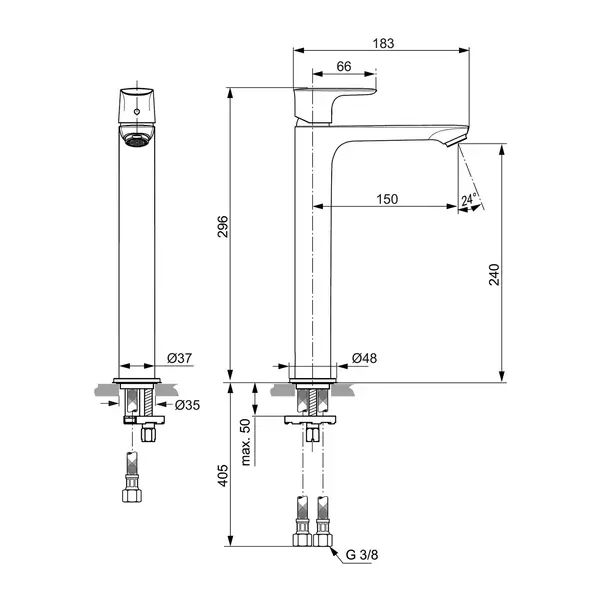 Baterie pentru lavoar, tip Vessel, subtire