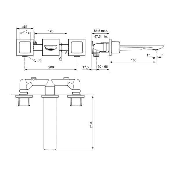 Specificatii tehnice Baterie lavoar incastrata Ideal Standard Atelier Conca 180 argintiu Silver Storm cu corp ingropat: