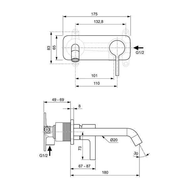 Specificatii tehnice Baterie lavoar incastrata Ideal Standard Atelier Joy gri Magnetic Grey pipa 18 cm: