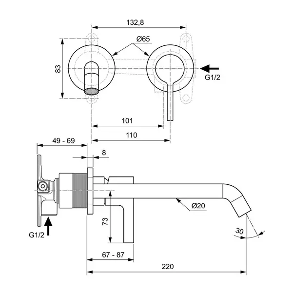 Specificatii tehnice Baterie lavoar incastrata Ideal Standard Atelier Joy pipa 22.5 cm crom lucios: