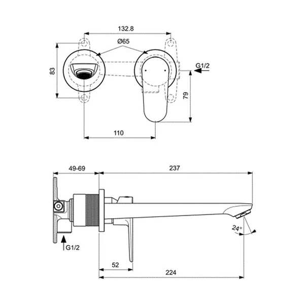 Specificatii tehnice Baterie lavoar incastrata Ideal Standard Cerafine O negru mat Silk Black: