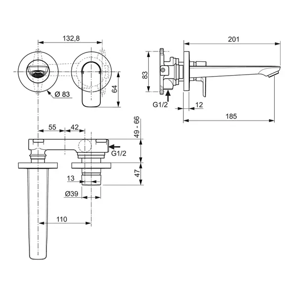 Specificatii tehnice Baterie lavoar incastrata Ideal Standard Connect Air pipa 19 cm gri Magnetic Grey fara corp ingropat:
