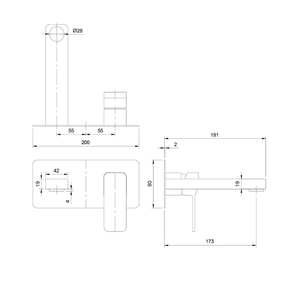 Bateria pentru lavoar incastrat Omnires Slide grafit