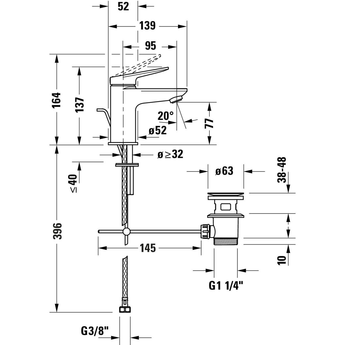 Specificatii tehnice Duravit Wave baterie lavoar stativ alamă/bronz antic WA1010001004: