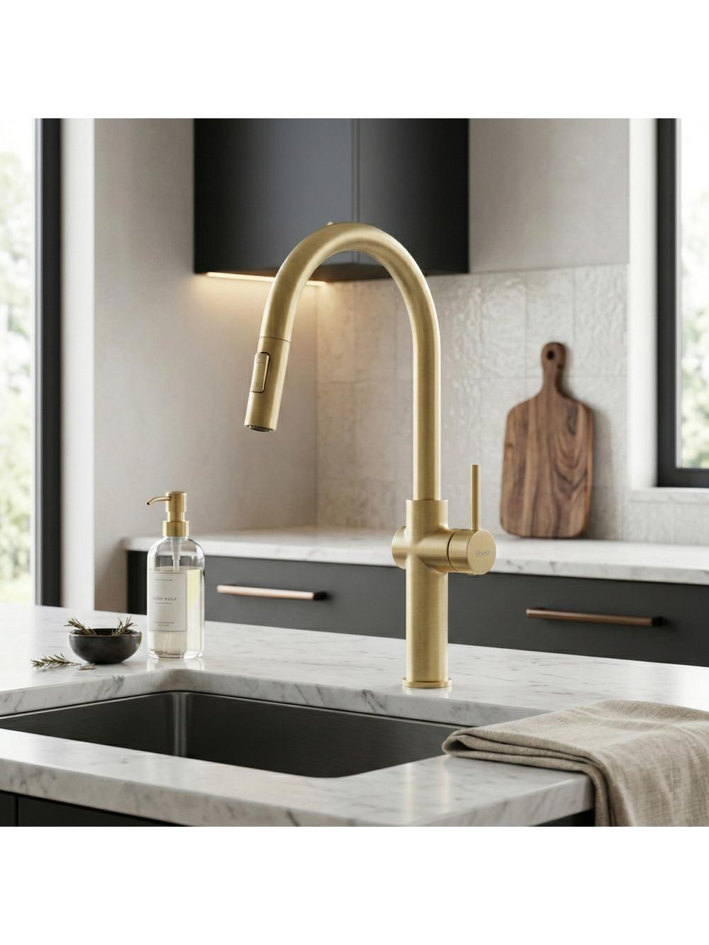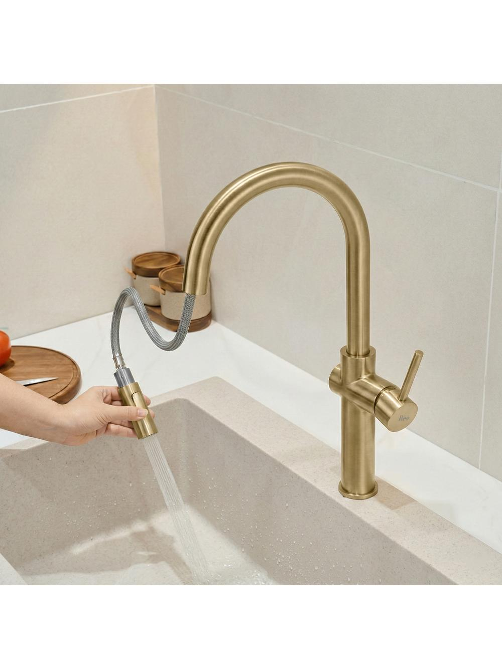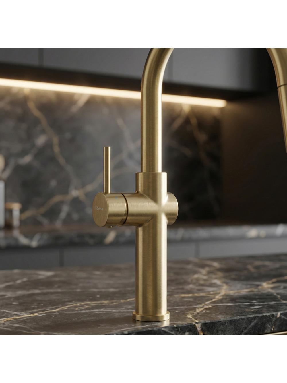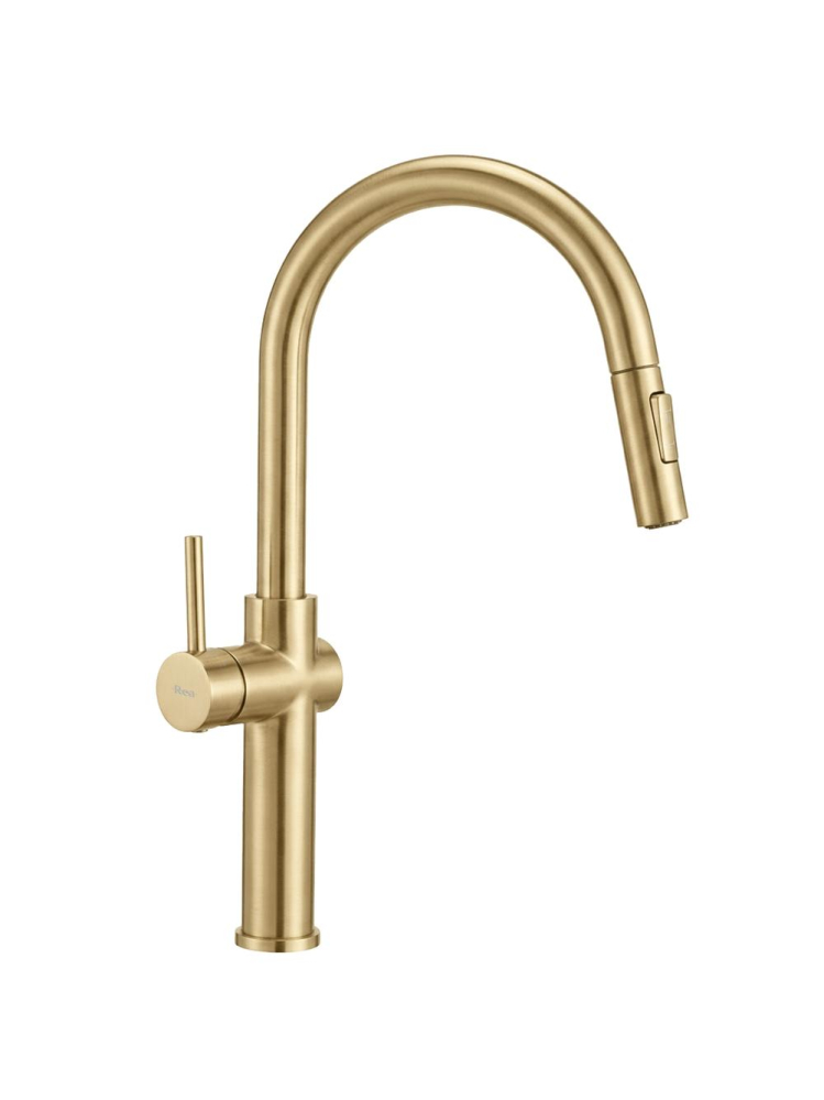 Descoperă beneficiile aduse de bateria de bucătărie Rea Fresh High în finisaj auriu periat, care aduce un plus de funcționalitate și stil în zona de spălare a bucătăriei tale. Această baterie cu design modern și luxos oferă un confort maxim în utilizare, datorită corpului solid din alamă și stratului extrem de rezistent obținut prin tehnologia avansată PVD.