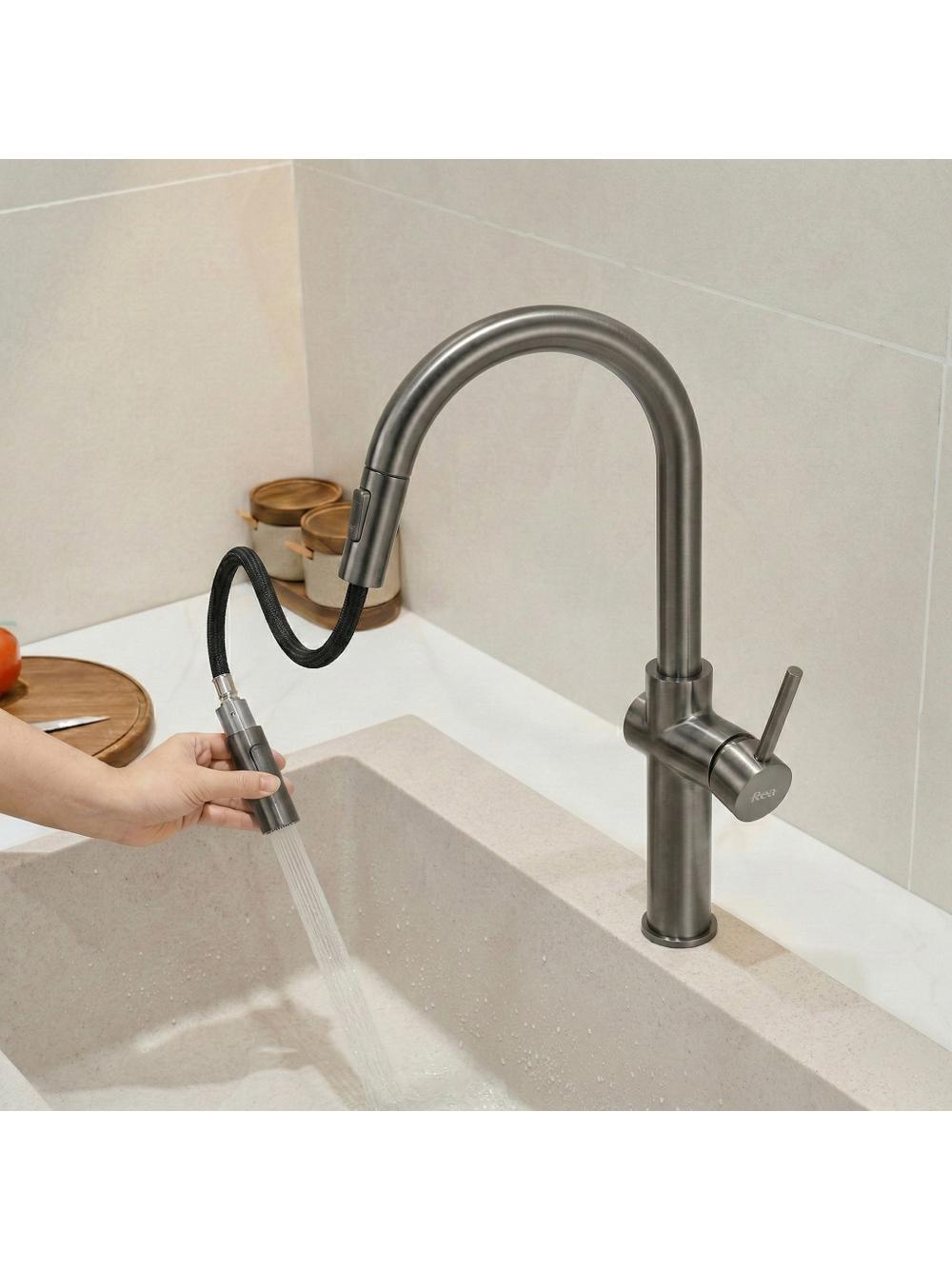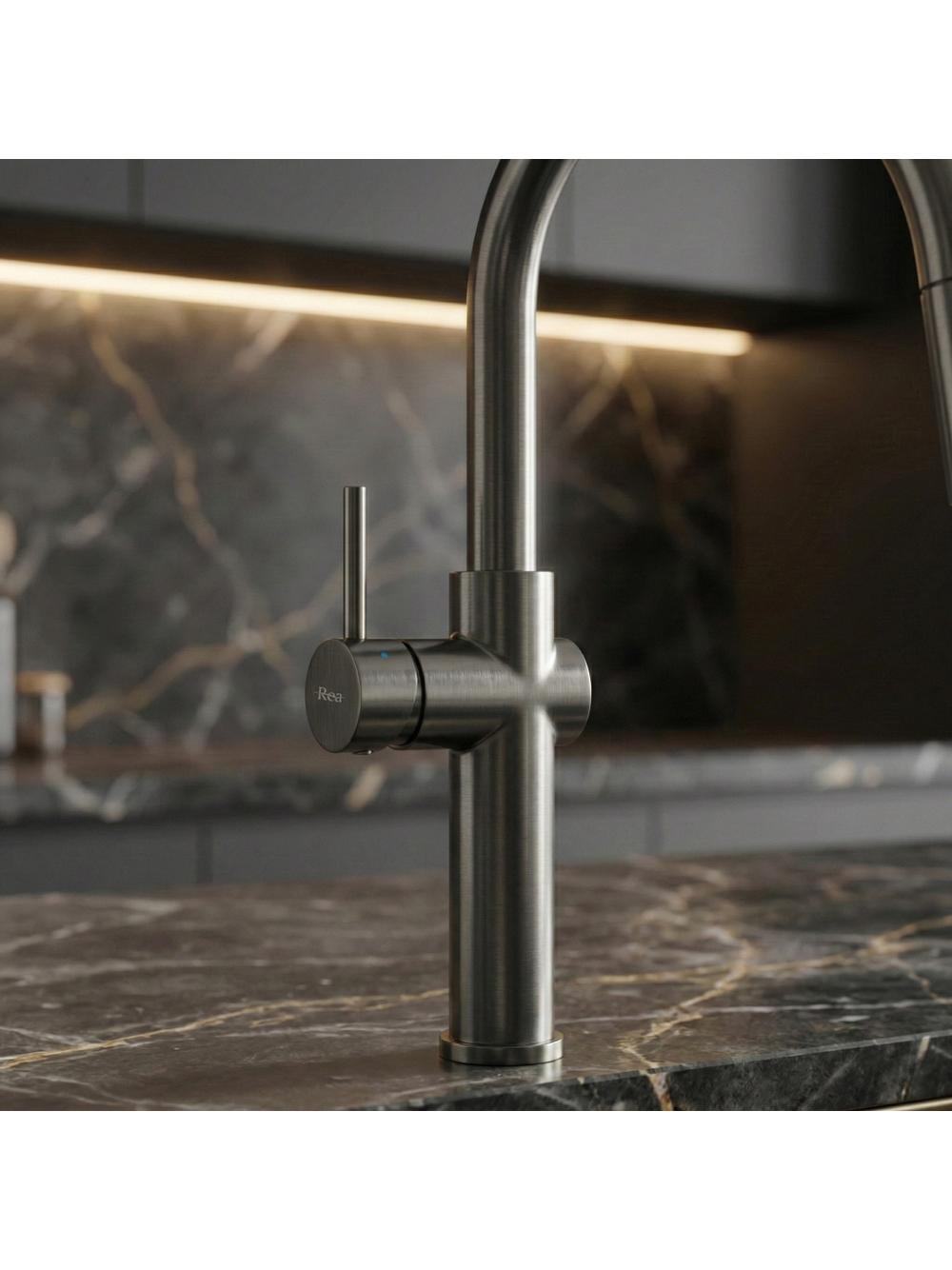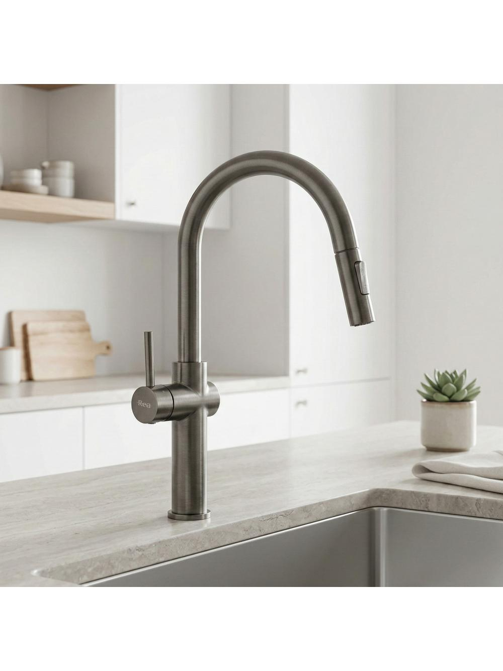 Îmbunătățește eficiența spațiului tău de spălare cu bateria de bucătărie Rea Fresh High Titan, echipată cu un design modern și un finisaj titan. Constructorul solid din alamă și stratul rezistent obținut prin procesul avansat PVD asigură fiabilitate sporită în medii de bucătărie solicitante.