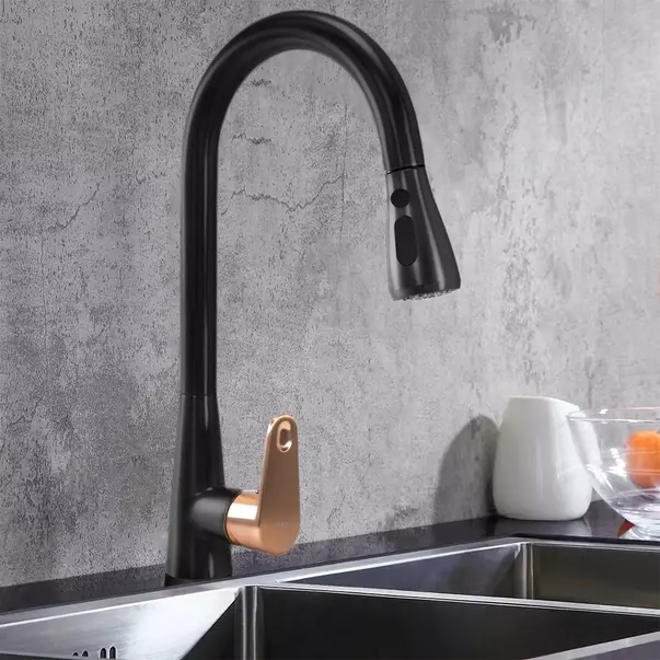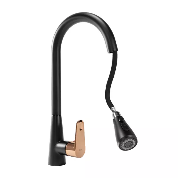 Baterie bucatarie cu dus extractibil Rea Mild negru mat - Rose Gold