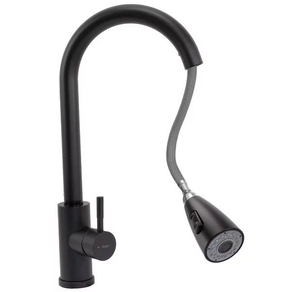 Baterie bucatarie cu dus extractibil negru Rea Cross