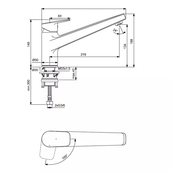 Specificatii tehnice Baterie bucatarie Ideal Standard Ceraplan BlueStart cu pipa turnata joasa: