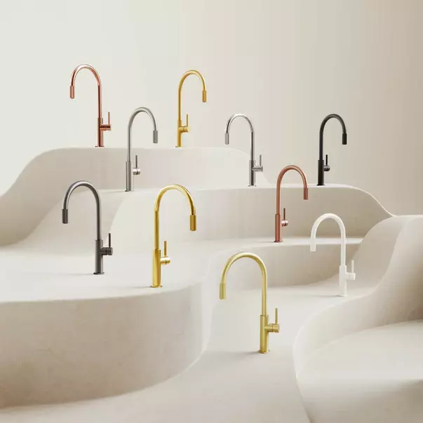 Designul contemporan al colectiei include proportii bine echilibrate si ofera o functionare intuitiva. Detaliile clare disting cele doua cai separate ale apei - una prin mixer si cealalta prin varful scurgerii, pentru apa filtrata. Aceste elemente distinctive se completeaza de linia minimalista a mixerului, cu curbe subtile.