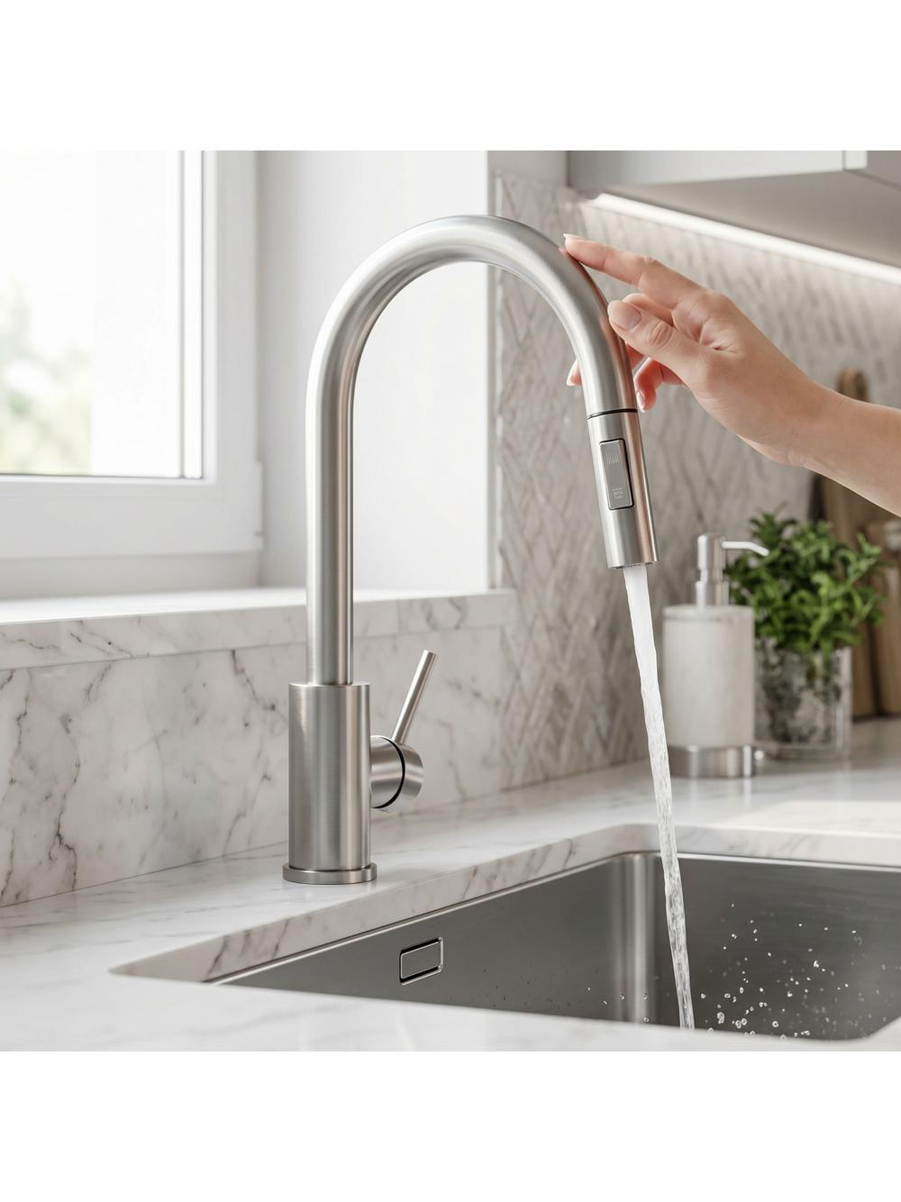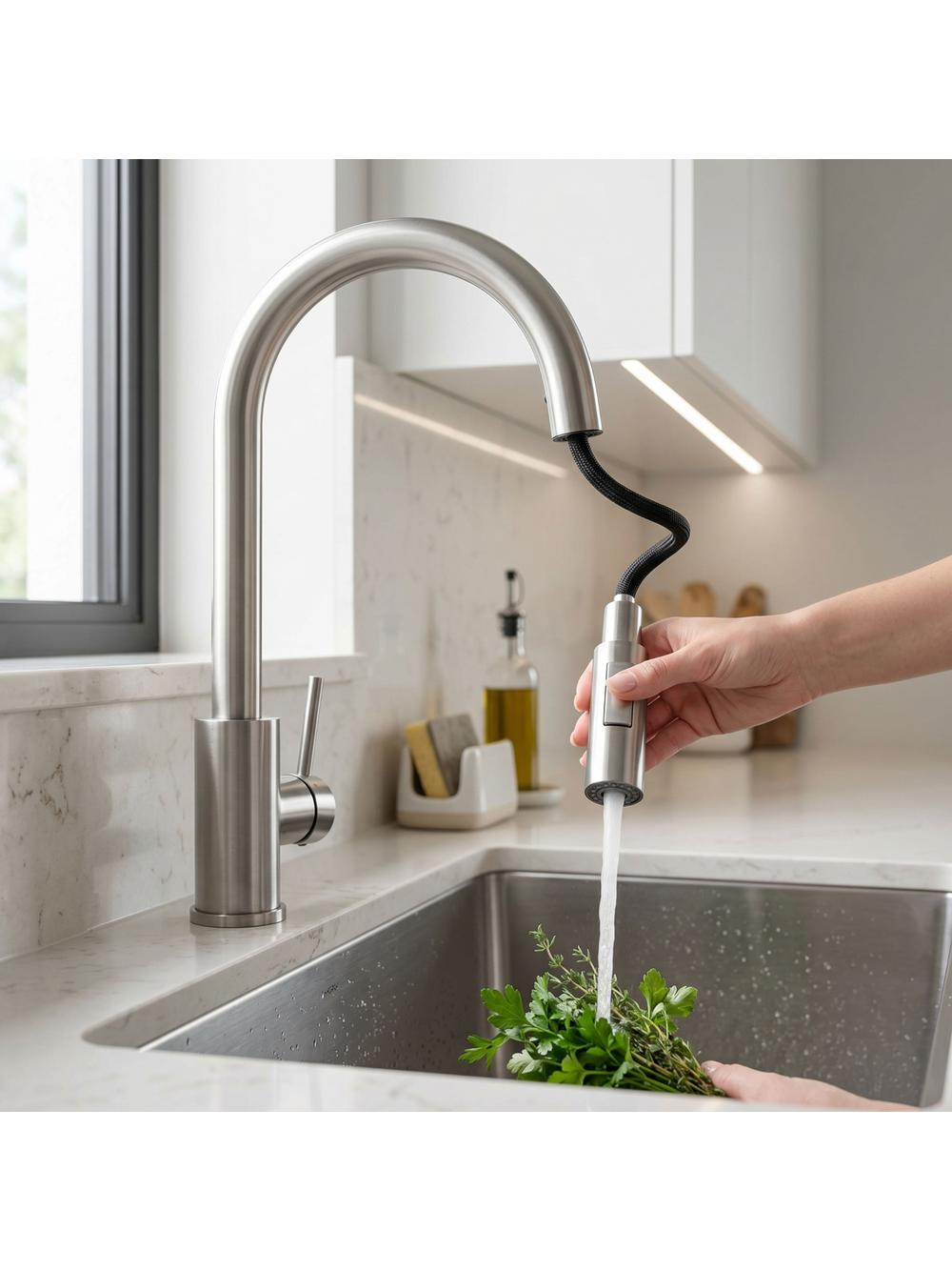 Această baterie de bucătărie solidă și durabilă asigură funcționarea confortabilă și rezistența la uzură în utilizarea zilnică. Upgradeaza-ți bucătăria modernă cu această soluție inovativă, care oferă confort, igienă și funcționare rapidă.