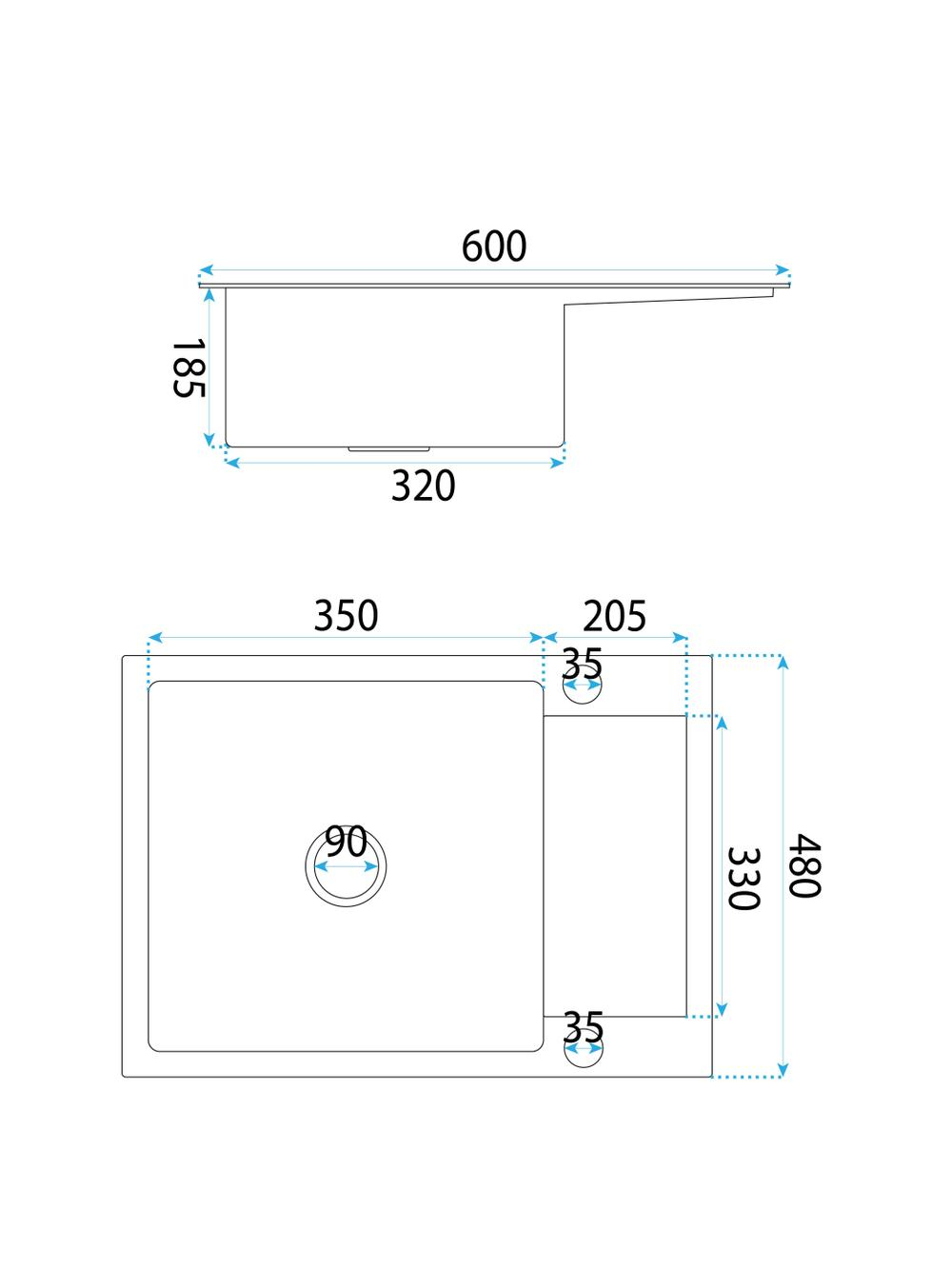 Tip sifon: Chiuveta bucatarie, cu posibilitatea de a conecta o mașină de spălat vase