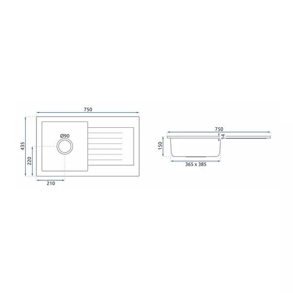 Specificatii tehnice Chiuveta compozit Rea Dag negru mat 75x44 cm: