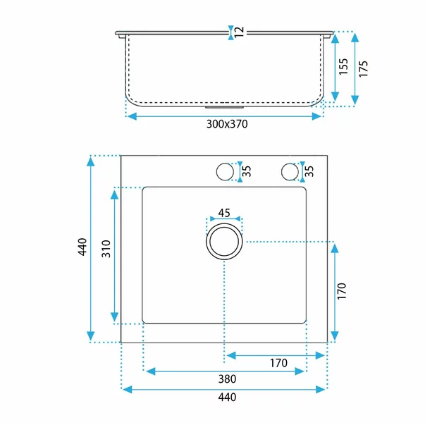 Specificatii tehnice Chiuveta compozit Rea West negru pestrit 44x44 cm: