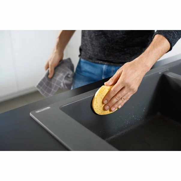 Toate chiuvetele din oțel inoxidabil Hansgrohe sunt fabricate din oțel de înaltă calitate, cu o grosime de un milimetru, sudat manual. Acesta este durabil, igienic și ușor de curățat. Toate chiuvetele încorporabile din oțel inoxidabil sunt prevăzute cu un suport de ranforsare și cu material cu grosime dublă pentru a asigura o fixare stabilă a robinetului. Pentru chiuvetele robuste din granit se folosesc particule de cuarț din Germania cu margini rotunjite, pentru a asigura o suprafață dură și durabilă.