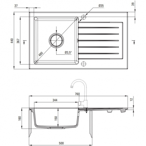 Specificatii tehnice chiuveta granit Deante Zorba 1 cuva cu picurator 44x76 cm negru: