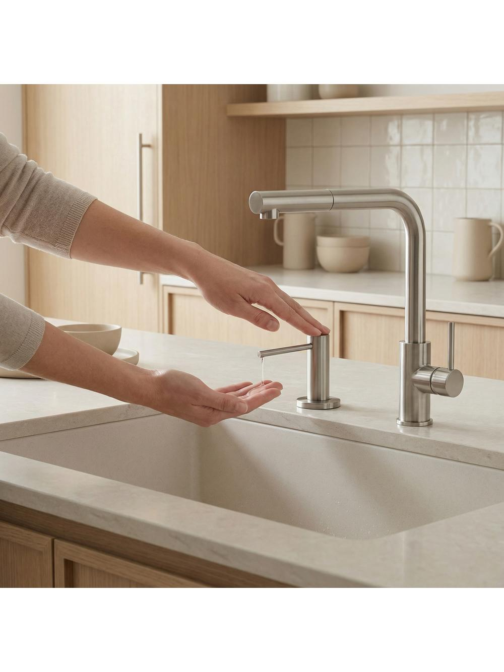 Descoperă cum îți poți optimiza zona de spălare cu ajutorul eleganței și practicității dozatorului de bucătărie Rea Dex. Cu un design modern și o capacitate de 300 ml, acest accesoriu nu doar îți ușurează activitățile zilnice, dar adaugă și un element decorativ în bucătăria ta. Montat în chiuvetă sau pe blat, acest dozator te scapă de aspectul dezordonat al sticlelor de detergent sau săpun. Finisajul bine asortat și forma de designer fac din Rea Dex alegerea perfectă pentru cei care apreciază minimalismul și practicitatea. Optează pentru acest produs pentru a beneficia de un plus de confort și igienă în bucătăria ta, completându-ți spațiul de spălare cu un accesoriu elegant și funcțional.