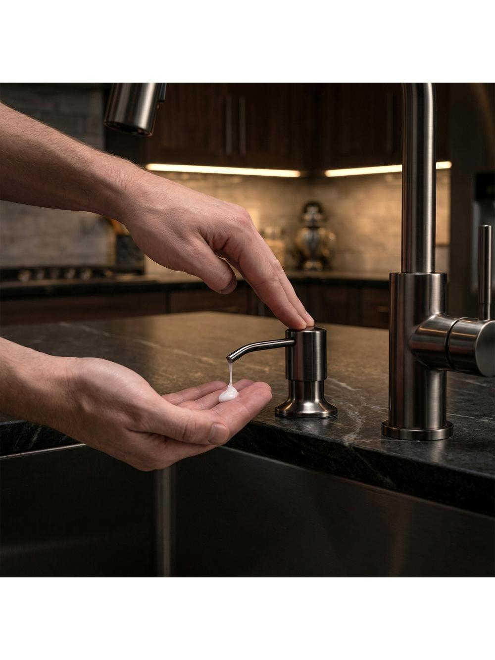 Cu o capacitate de 300 ml, rezervorul are dimensiunile ideale care îți permit să nu reumpli lichidul des, crescând astfel confortul utilizării. Montarea în chiuvetă ajută la economisirea spațiului pe blatul de bucătărie și la menținerea ordinii în jurul zonei de spălare. Gradația precisă a recipientului semitransparent îți oferă control constant asupra nivelului lichidului, astfel încât să știi întotdeauna când trebuie să-l reumpli. Garnitura suplimentară la filet asigură o etanșeitate excepțională și stabilitate la montaj, protejând astfel dulapul de sub chiuvetă împotriva umezelii accidentale.