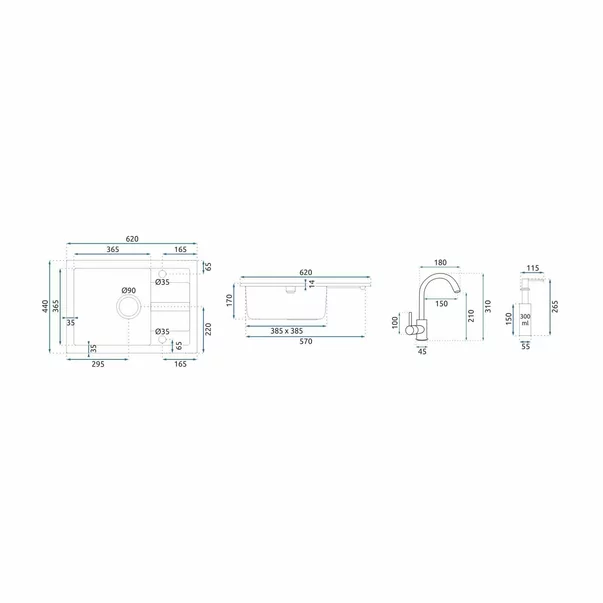- Lungime chiuvetă: 620 mm