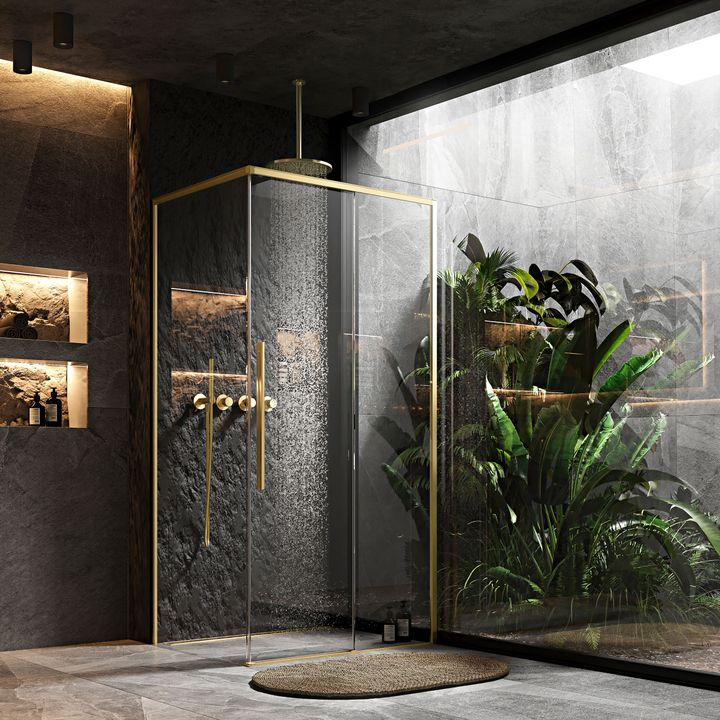 Cabină de duș elegantă Rea Solar Gold cu dimensiunile de 90×90 cm este simplu de montat. Poate fi instalată atât pe podea cât și pe cadă.