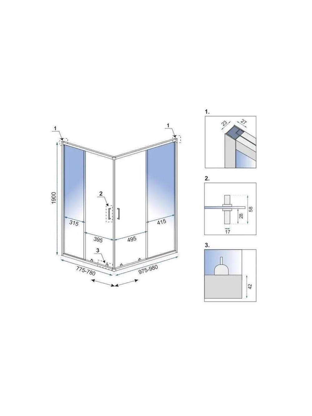 Specficatii tehnice Cabină de duș Rea City 80x100 cm Crom periat: