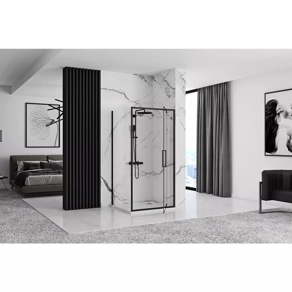 Specificatii tehnice Cabina de dus patrata cu usa batanta si 2 pereti ficsi Rea Rapid Swing 80x80 negru: