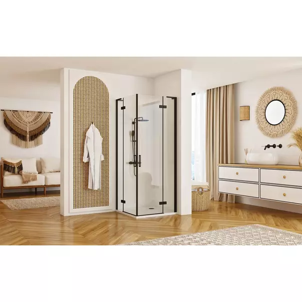 Cabina de dus patrata Rea Hugo cu 2 usi batante 80x80 cm negru