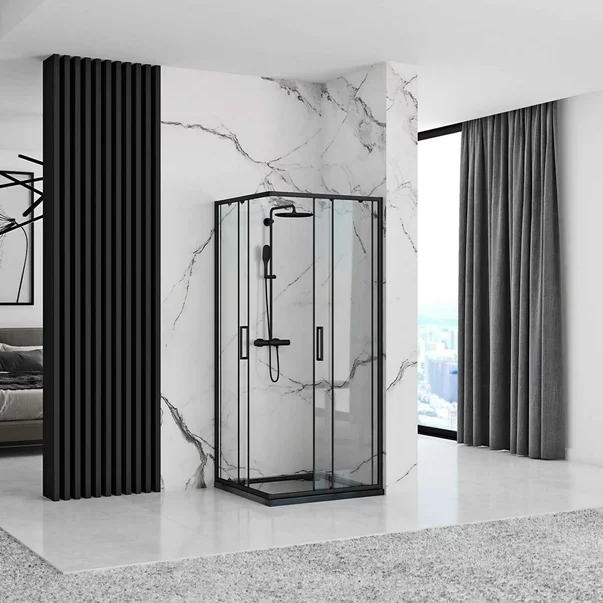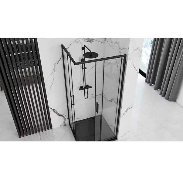 Cabina de dus patrata Rea Punto cu usi glisante 80x80 negru mat