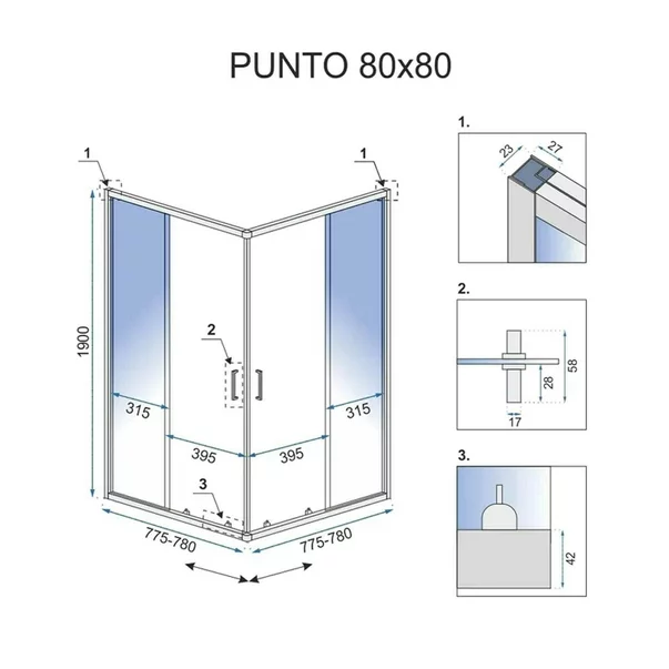 Specificatii tehnice Cabina de dus patrata Rea Punto 80x80 negru mat:
