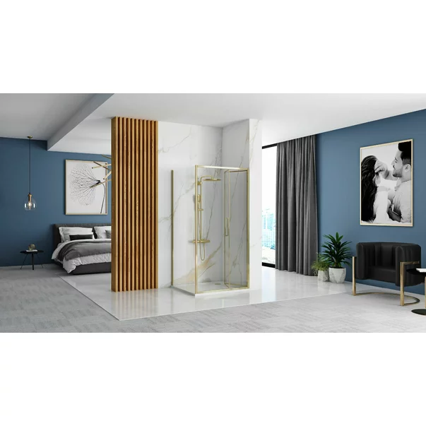 Cabina de dus dreptunghiulara cu usi pliabile auriu Rea Rapid Fold 100x80 cm