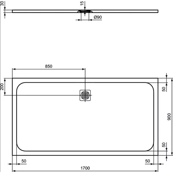 Cadita de dus ultra-subtire, 30 mm produsa din material Ideal Solid
