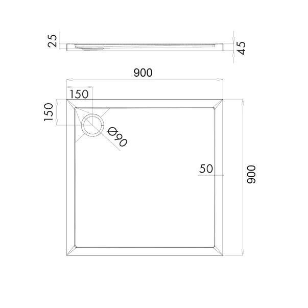Specificatii tehnice Cadita dus patrata din acril Omnires Merton alb lucios 90x90: