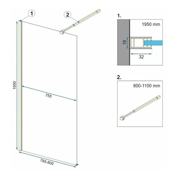 Specificatii tehnice Paravan de dus tip Walk-in Rea Aero 90x195 cm si etajera cu suport negru: