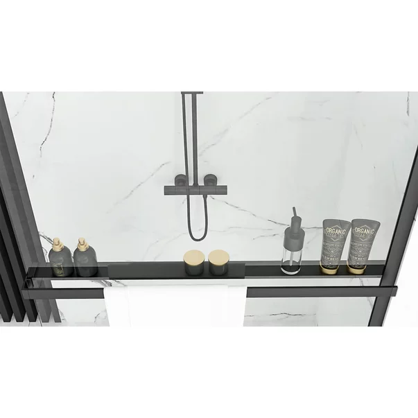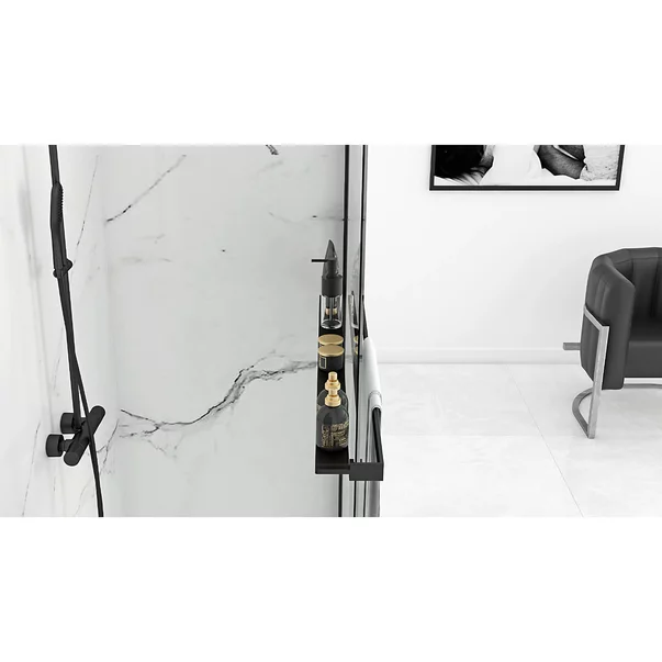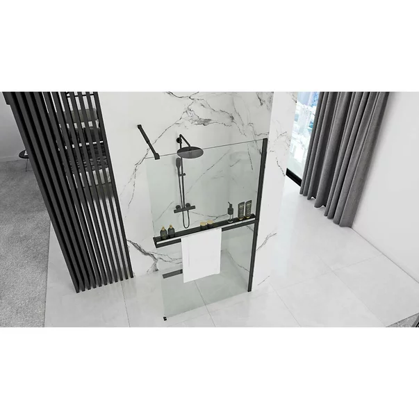 Paravan de dus tip Walk-in Rea Aero 80x195 cm si etajera cu suport negru