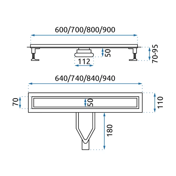 Specificatii tehnice Set rigola pentru dus plus capac inox periat Rea Neox Superflow 80 cm: