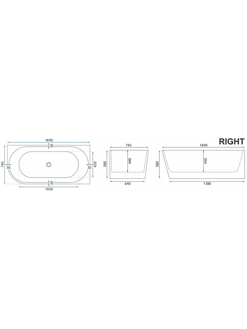 Specificații tehnice Cada freestanding cu ventil auriu periat Rea SYDNEY BELLANTO dreapta 150 cm alb: