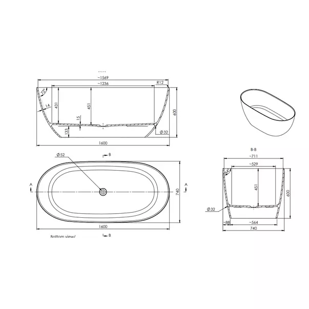 Specificatii tehnice Cada freestanding din compozit Marmite Coral 160x74 cm: