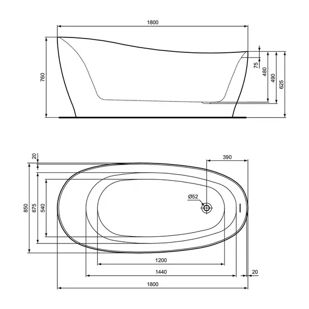 Specificatii tehnice Cada freestanding Ideal Standard Atelier Around 180x85 cm alb - negru lucios:
