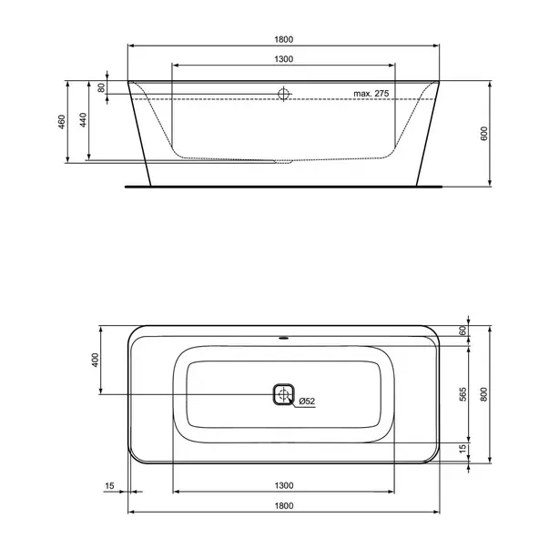 Specificatii tehnice Cada freestanding Ideal Standard Atelier Tonic II 180x80 cm alb mat: