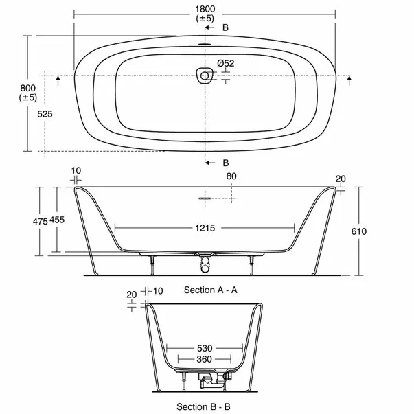 Specificatii tehnice Cada freestanding Ideal Standard Dea Duo 180x80 cm: