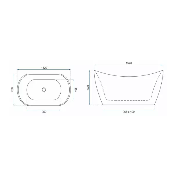 Specificatii tehnice Cada freestanding Rea Kerrano 150x75 cm alb lucios: